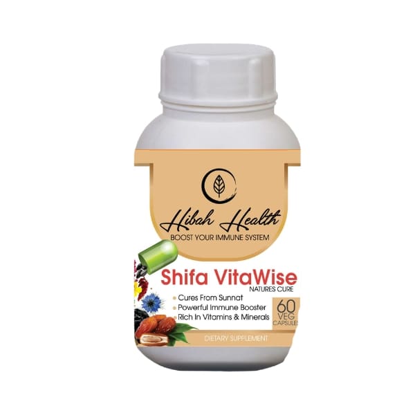 Veg capsules combining selected Sunnah ingredients for broad spectrum support. Promoted as an immune booster rich in vitamins and minerals. 60 capsules per bottle for daily use in consultation with a health professional.