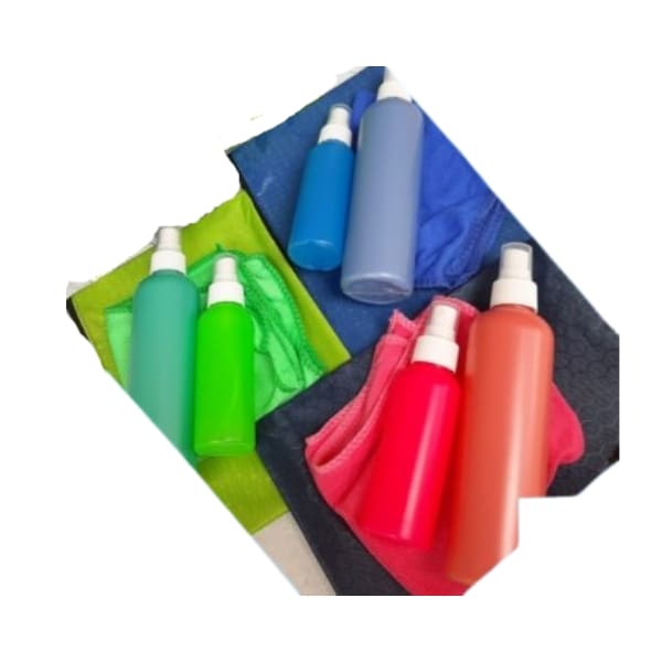 Wudhu travel pack in waterproof zipper bag. Includes 100 ml mist spray bottle, 250 ml wudhu or istinja bottle with spray and a cooling towel. Designed for travel, Hajj, Umrah and daily use.