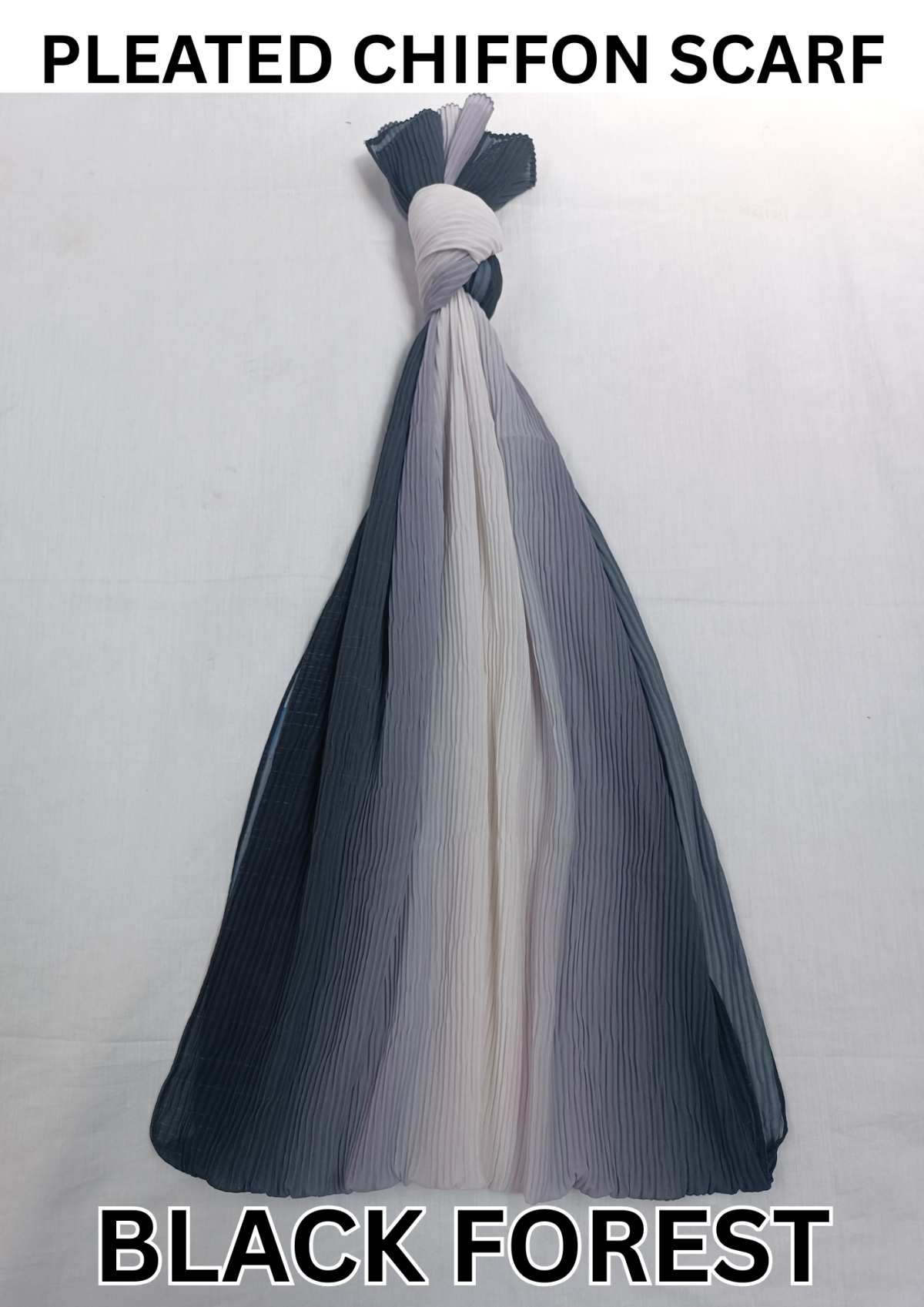 The pleated chiffon scarf offers a soft , lightweight feel with delicate pleats that create a flowing , elegant look. Its Breathable fabric make it a versatile and stylish for any occasion .