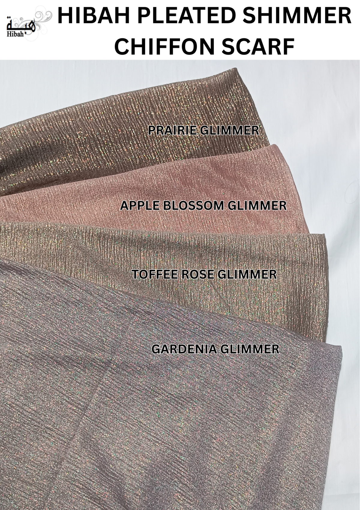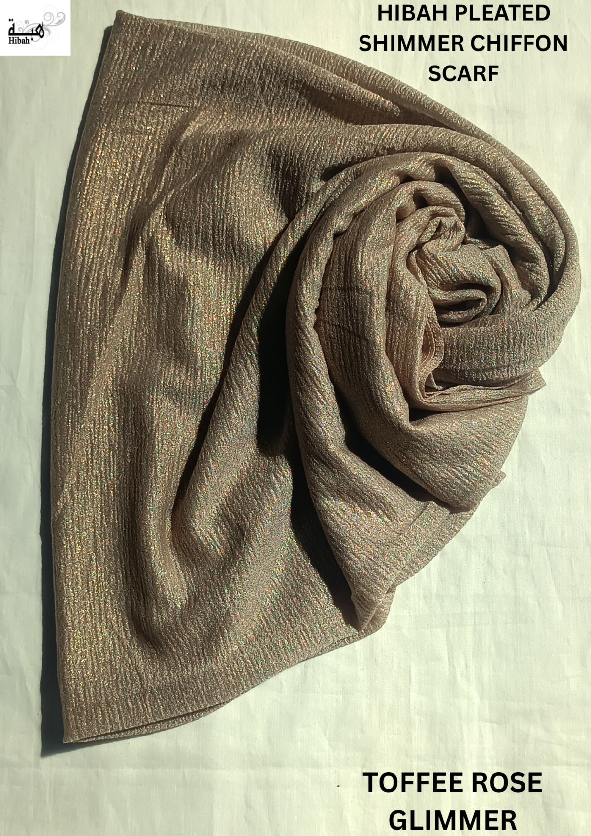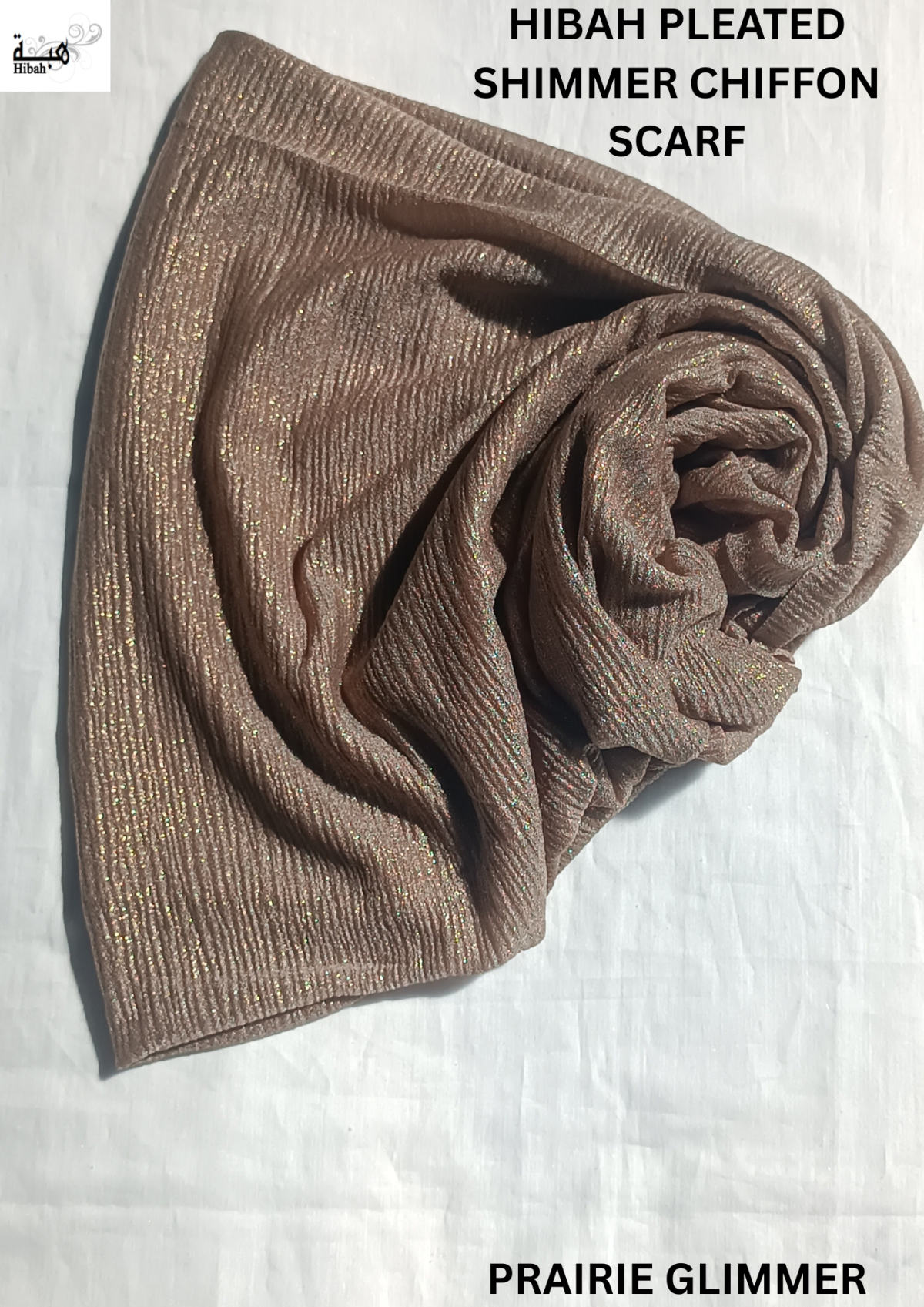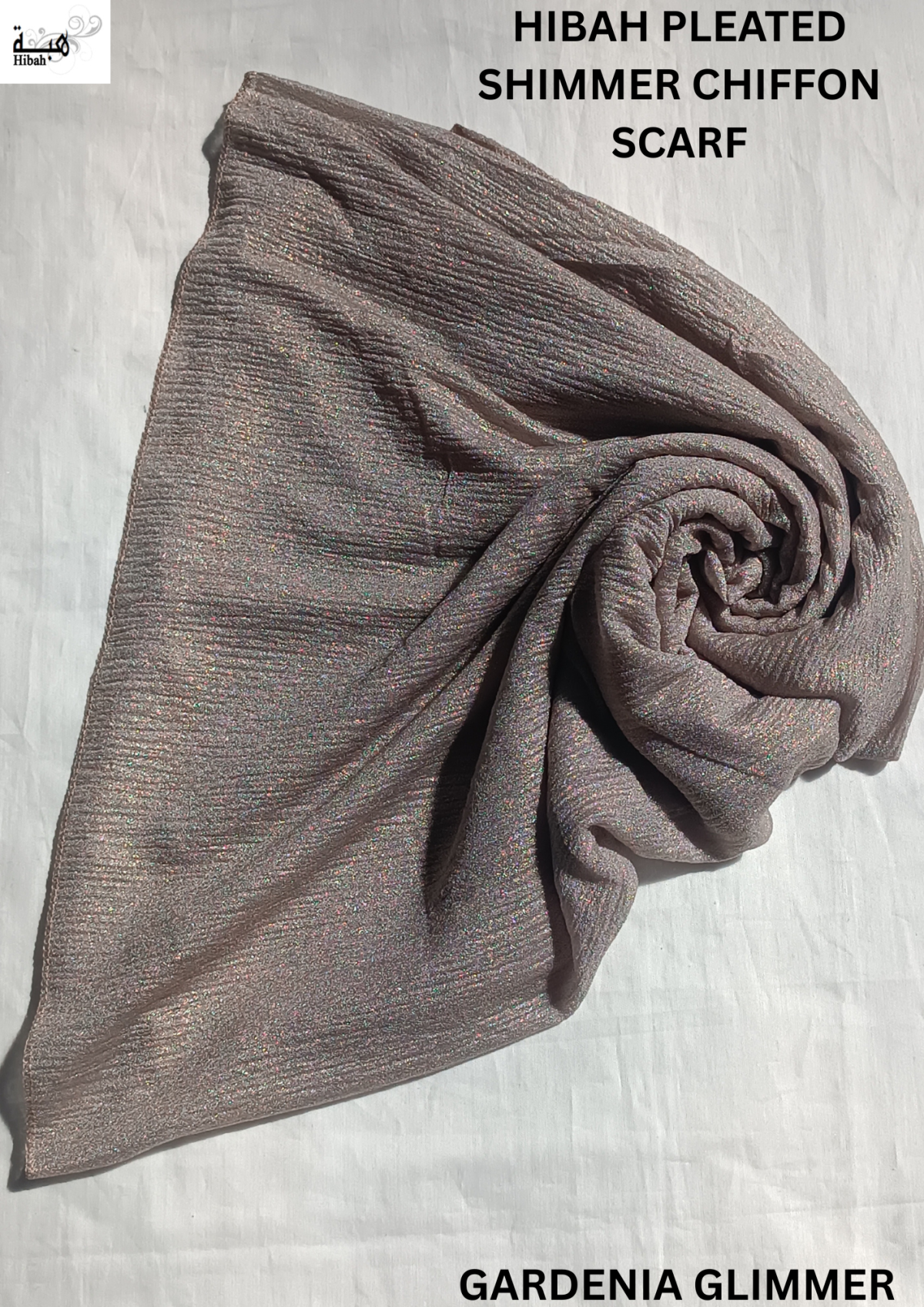 Pleated shimmering lightweight pleated chiffon fabric. It's a perefct choice for adding sparkle to your wardrobe with its soft gold shimmer!